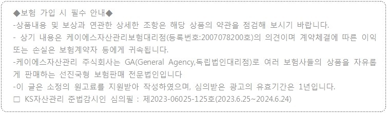 보험은 한번 가입하면 최소 몇십년을 납부해야 하기 때문에 처음에 잘 가입해야 합니다.
